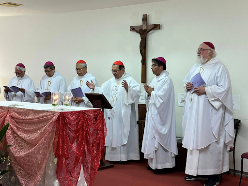 終戦後80年を迎える今年の平和巡礼には、12人の司教様方が小禄教会で共に早朝ミサを捧げ、魂魄の塔での集会にも参加されました。